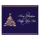 Simple gold Christmas tree with Merry Christmas. The Christmas tree is a line drawing with a star at top.