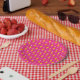 Gold Christmas Trees & White Snow Flakes, Fuchsia Paper Plate