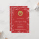 Elegant gold Christmas wreath with a bell over a red background with snowflake edge