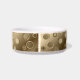 This is a heavy, durable bowl decorated with Tibbies of many colors, the perfect size for hungry/thirsty Tibs. The design is interesting and printing clear.