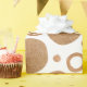 Wrapping paper, beautiful, glossy wrapping paper with gold brushed dots and circles all over. This looks like it was hand painted onto the paper. Order a few rolls and enjoy!