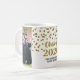 Customisable photo template class of 2020 graduation mug with gold confetti pattern. Please note gold is photographic effect only.