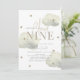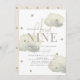 This cute "the bride is on cloud nine/9" bridal shower invitation features fluffy faux light gold clouds and faux/fake gold stars on a white background. The reverse side features a light yellow background with faux gold stars. Personalise for your needs. You can find more matching products at my store.
