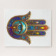 Gold Colorful Hamsa Turquoise Sapphire Third Eye Jigsaw Puzzle