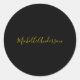 Gold Colour Black Modern Minimalist Handwrite Name Classic Round Sticker