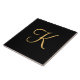 Gold-coloured initial K on black background Tile