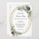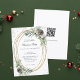 A white background. An oval faux gold frame decorated with cones, white berres and pine greenery. Faux silver glitter, sparkles. Personalise and add the details. Black text.
