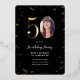 Gold foil 50th birthday party invitations design with classic confetti along the border and a custom photo.