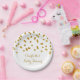 Customisable name girl baby shower party plates in gold confetti pattern and elegant hand lettered style text.