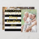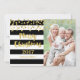 Merry Christmas 2017 customisable photo card with black and white stripes and gold confetti. Add your custom text to this card to create a unique Christmas photo greeting this holiday season for friends and family. Please note glitter effect is printed photographic effect only.