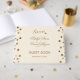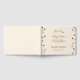 A beautifully presented guest book which came with a lovely gift box for storage. The book was hard back so stayed fresh after being handed around to all our wedding guests. We had lots of compliments about the design which went perfectly with our theme. Perfect, no issues at all with the printing. It arrived on time and came well packaged.