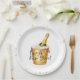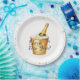 stylish and fun, these paper plates are perfect for your New Year's Eve party celebration.  The design features gold confetti, a champagne bottle in a gold bucket, and the text "Cheers to the New Year!"
