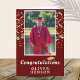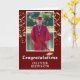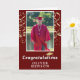 Gold Confetti Congratulations Graduation Photo Card. Trendy script with golden confetti on a dark red background. Add your favourite photo and personalise it with your grad’s name. Personalise the special message inside or erase it.