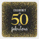 “50 and fabulous.” Be proud, rejoice and usher in 50 with style! This chic, playful, personalised, sparkly gold faux glitter confetti on a black background square sticker will help make her birthday a party to remember. Matching and coordinating invitations, envelopes, labels, paper napkins, paper plates, mugs and other items are also available. Makes a great addition to the festivities!