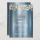 Gold Confetti Dots,Tiara Blue Metallic Quinceañera Invitation