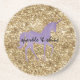 Gold Confetti Glitter Purple Unicorn Coaster