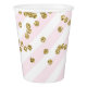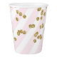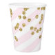Glamourous gold confetti pattern with pretty light pastel blush pink and white stripes paper cups, perfect for baby showers, birthday parties, weddings or bridal showers.