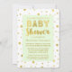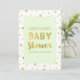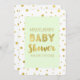 Custom gender neutral baby shower invitations with gold effect confetti pattern and light pastel mint green with modern handwritten style lettering. Customisable with your text. Contact us to request a different occasion.