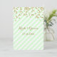 Custom wedding invitations in elegant and pretty light pastel mint green and white stripes, gold confetti and handwritten style lettering. Customise these invitations with your wedding details. Available in matching products for all of your wedding needs.