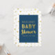 Custom baby shower invitations with gold effect confetti pattern and dark navy blue with modern handwritten style lettering. Customisable with your text. Contact us to request a different occasion.