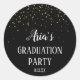 These Gold Confetti on Black graduation party envelope seals are perfect for an elegant graduation party. The design features faux gold confetti on a black background with classy white calligraphy. Personalise the stickers with the name of the graduate.
