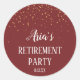 These Gold Confetti on Burgundy retirement party envelope seals are perfect for an elegant retirement party. The design features faux gold confetti on a warm burgundy background with classy white calligraphy. Personalise the stickers with the name of the retiree and the event date.