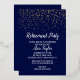 This gold confetti on navy blue retirement party gold foil invitation is perfect for an elegant retirement celebration. The design features real gold foil confetti with white calligraphy on a dark blue background.