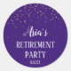 These Gold Confetti on Purple retirement party envelope seals are perfect for an elegant retirement party or reception. The design features faux gold confetti on a purple background with classy white calligraphy. Personalise the stickers with the name of the retiree.
