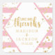 Gold Confetti & Pink Stripes Wedding Thanks Favour Square Sticker