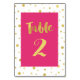 Glamourous and chic table number cards in bright fuchsia hot pink and white with gold confetti and hand lettered style text. Customise these cards with your table numbers for a special addition to your wedding tables. Also suitable for birthdays and anniversary parties.