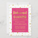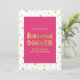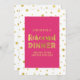Custom wedding rehearsal dinner invitations with gold effect confetti pattern and fuchsia hot pink with modern handwritten style lettering. Customisable with your text. Contact us to request a different occasion.