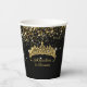 A rich black background shows off a sparkling golden tiara with faux gold confetti raining down from the top of this cup. Great addition to the table for the blingiest Quinceanera celebration ever! This can also be customised for any sparkling girl's birthday or other celebration. Available with matching products.