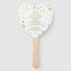 A fun gold confetti spotted white wedding heart shaped hand fan with space on the reverse for your wedding party, a poem or order of service. Any thanks you wish to say!