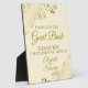 This elegant self standing sign or plaque will welcome guests to sign your wedding guest book. Fully customizable, and designed to coordinate with our Gold & Cream Elegant Wedding Suite, it features a simple sophisticated yet fancy design with gold text on a cream colored background with a gold faux foil frilly floral filigree in the corners.