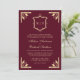 Gold Crest Monogram QR Code Burgundy Wedding Invitation