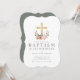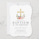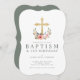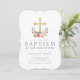 Gold Cross Floral Wreath Baby 1st Birthday Baptism Invitation