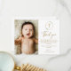 Say thank you with grace using the Gold Cross Greenery Wreath Baptism Photo Thank You card! Featuring a delicate greenery wreath, gold cross, and space for your baby’s photo, this elegant design is perfect for expressing gratitude to loved ones after a baptism. A cherished keepsake for family and friends.