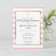 Gold Cross Pink Stripe First Holy Communion Invitation