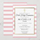 Elegant First Holy Communion pink and white striped invitation featuring an elegant gold cross with a faux gold foil border framing your special celebration event details set in chic classic typography. Designed by Thisisnotme©