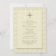 A muted background of flowers and swirls is overlaid by a solid panel which is embellished by an intricate gold cross and trimmed with two rows of tiny horizontal dots. This design is suitable for any religious celebration.