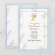 An elegant, religious invitation featuring a gold cross and simple foliage in light grey with a blue trim. The card is easy to customise with your wording, font, font colour and choice of paper types. Not exactly what you're looking for? All our products can be custom designed to meet your needs at no extra charge. Simply contact us at askpixieprints@aol.com. Coordinating products available.