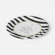 Chic black and white stripe First Holy Communion paper plate featuring a gold cross with an elegant faux gold foil border that frames your special celebration event message set in modern typography. Designed by Thisisnotme©