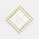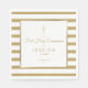 Elegant gold and white striped First Holy Communion paper napkin featuring a gold cross with a chic faux gold foil border that frames the celebration event details set in modern text. Personalise with your child's name and special date. Designed by Thisisnotme©