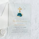 Gold Cross Turquoise Floral First Communion Acrylic Invitations