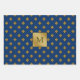 Gold Cruciferous Flowers Monogrammed Blue Wrapping Paper Sheet