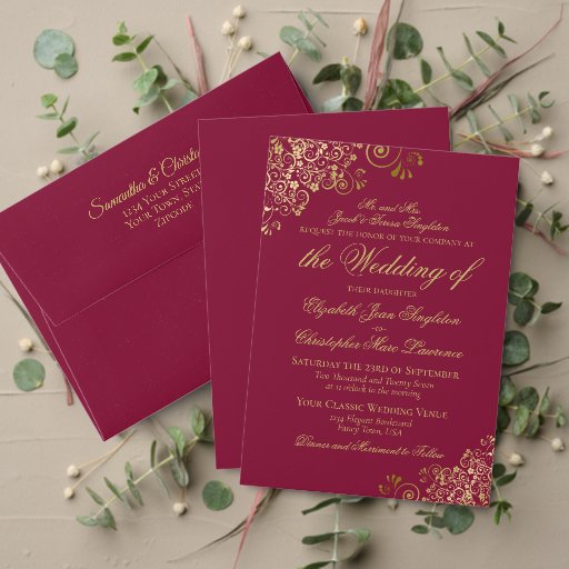 Burgundy Maroon & Gold Lace Elegant Wedding SuiteDesigned by Cat Ritchie