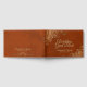 This elegant guest book will serve as a special memento of your wedding day. It features a lush marbled rust orange or burnt umber coloured background with frilly and ornate faux foil gold filigree and chic script lettering. The title reads Wedding Guest Book and there is space for the names of the couple and wedding date.