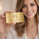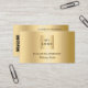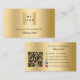 A faux gold looking background. Personalise and add your business logo, name, title and contact information. Add your website url/link to the Qr code. With Facebook and Instagram icons. Black text.