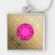 Gold Damask with a faux pink tourmaline gem Key Ring