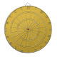 A medium, solid colour "Gold" Custom Dartboard with darts. Gold or Metallic Gold is a non-metallic gold colour. Click on "Customise" to change colour or to add images, text, and designs. Product Hex Code: #d4af37